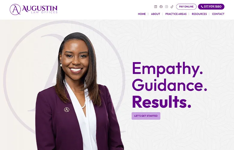 The new website reflects Augustin Law’s commitment to excellence and compassion, providing clients with a clear and inviting platform to learn about the firm’s services and values.