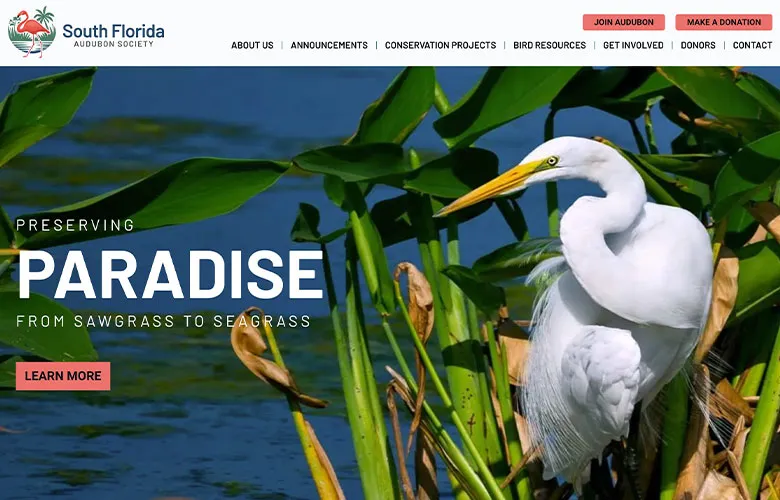 The team at PaperStreet greatly enjoyed designing and developing this website, which features bright photography of South Florida wildlife and helps to preserve the eco-systems that PaperStreet – based in Fort Lauderdale – calls home. The website features a meeting and events portal for users and makes it easy for the public to join, make a donation or get involved in other ways. Check out their active conservation projects, and bird resources.