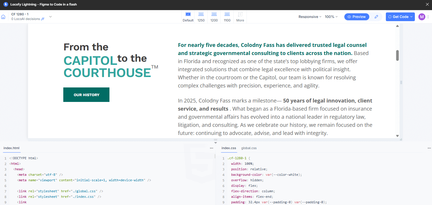 - Is Locofy.ai “Cutting Edge?” Yes. The speed at which it converts visual frames into a live preview (less than 2 minutes in our test) is staggering. Then, we must remark on the variety of technologies it can work with and the well-thought-out the user experience through all these intricate steps